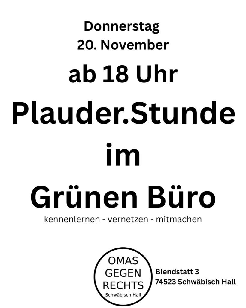 Ort: Grünen Büro, Blendstatt 3, Schwäbisch Hall